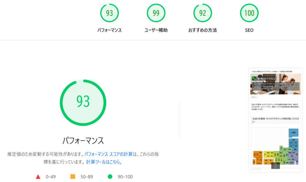 ただ、適切な処置をおこなうと、整体・カイロなびのスコアを77点から93点まで引き上げることができました。