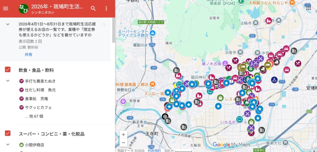 そこで、斑鳩町生活応援券が使えるお店をすべてGoogleマップに掲載し、店舗情報をGoogleビジネスプロフィールでチェックできるようにしました。