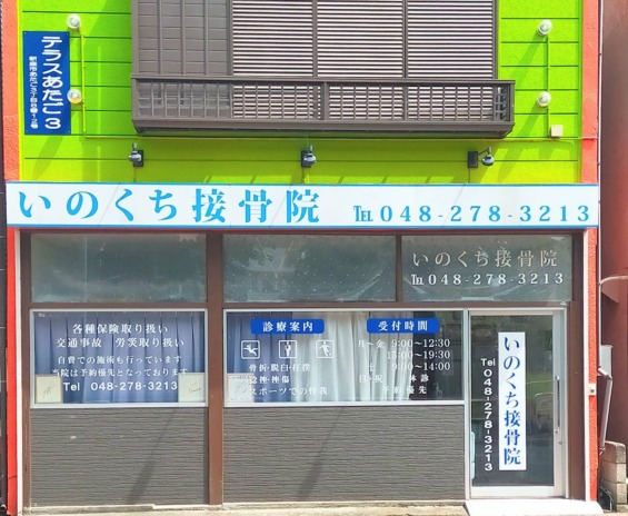 埼玉県新座市、新座駅から車で10分。旭ヶ丘団地目の前の「いのくち接骨院」です。